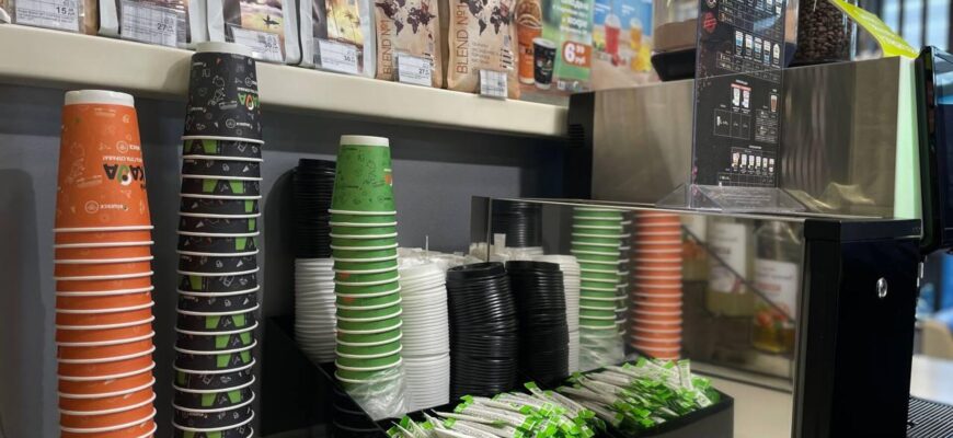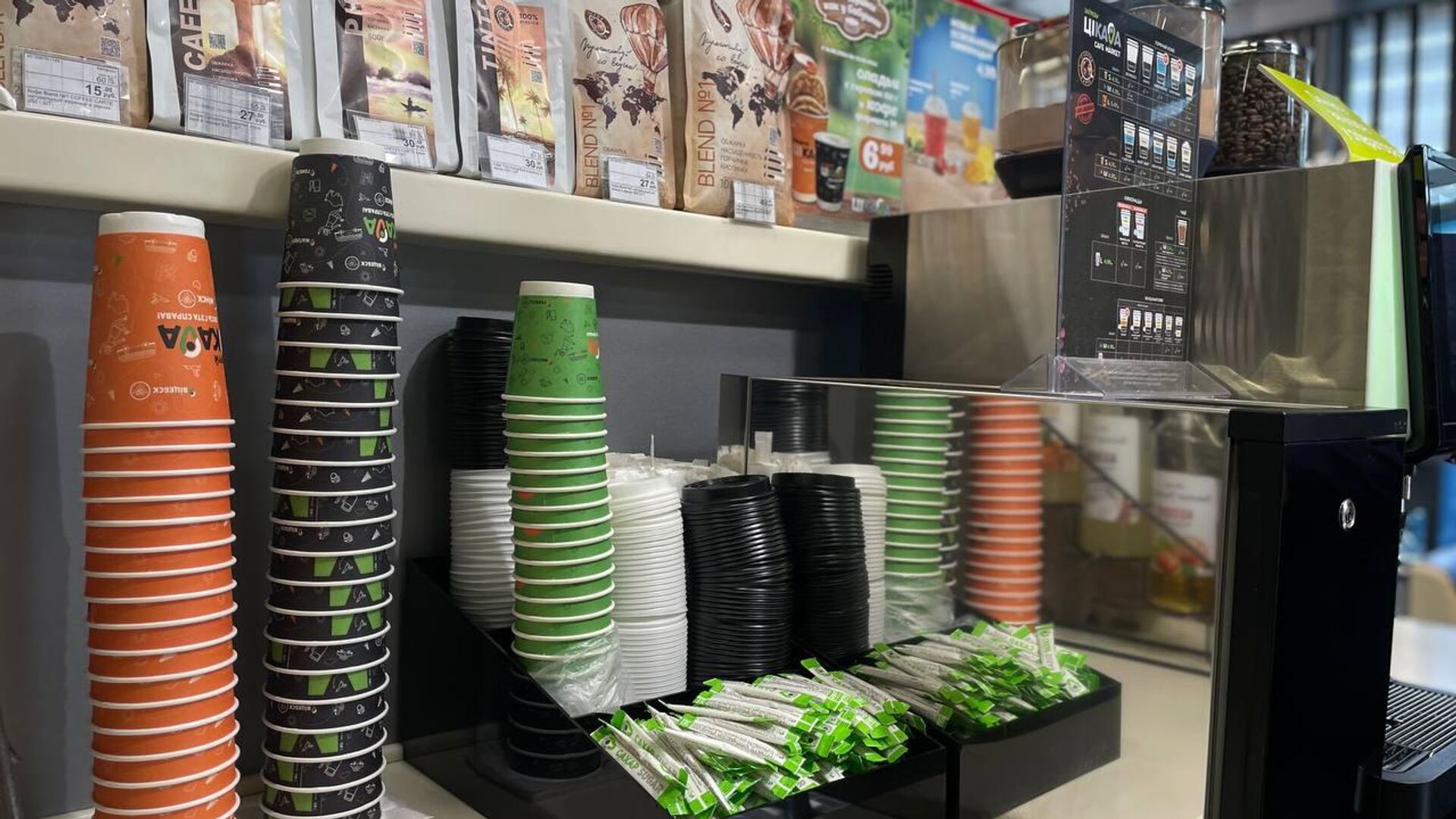 - Приготовить кофе, забрать приготовленную еду у кассира;
