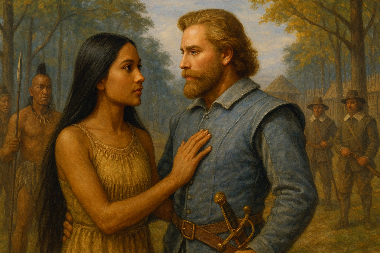 Сцена, где Покахонтас спасает Джона Смита от казни, появилась в поздних воспоминаниях самого Смита, датированных 1616 и 1624 годами. В 1607 году девушка была около 10–11 лет. В ранних отчётах Смита описание «спасения» отсутствует. Часть историков рассматривает описанную сцену как недоразумение, связанное с индейским обрядом усыновления, который англо-американский офицер мог принять за покушение на его жизнь. Прямых документальных свидетельств в поддержку версии о героическом спасении не найдено.