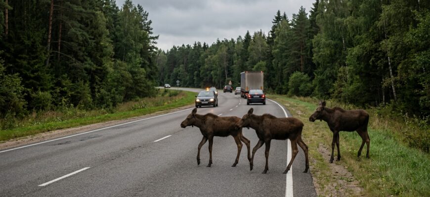 В ГАИ объяснили, что лосята отличаются высокой активностью и отсутствием страха перед приближающимся транспортом и людьми. Это поведение делает их непредсказуемыми участниками дорожной обстановки. Встреча с крупным диким животным на скорости часто приводит к тяжелым авариям с человеческими жертвами и значительным материальным ущербом.